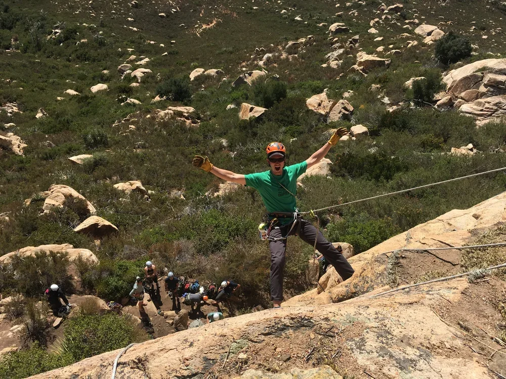 Great day out at Descanso guest guiding with the @sandiegochapter_aac. Students today were enrolled in the Gym 2 Crag program where they learned how to clean an anchor and rappel as well as build top rope anchors. Crag etiquette was discussed which involved "leave no trace" discussions and overall common cutesy. High stoke levels out there today, great job American Alpine Club!