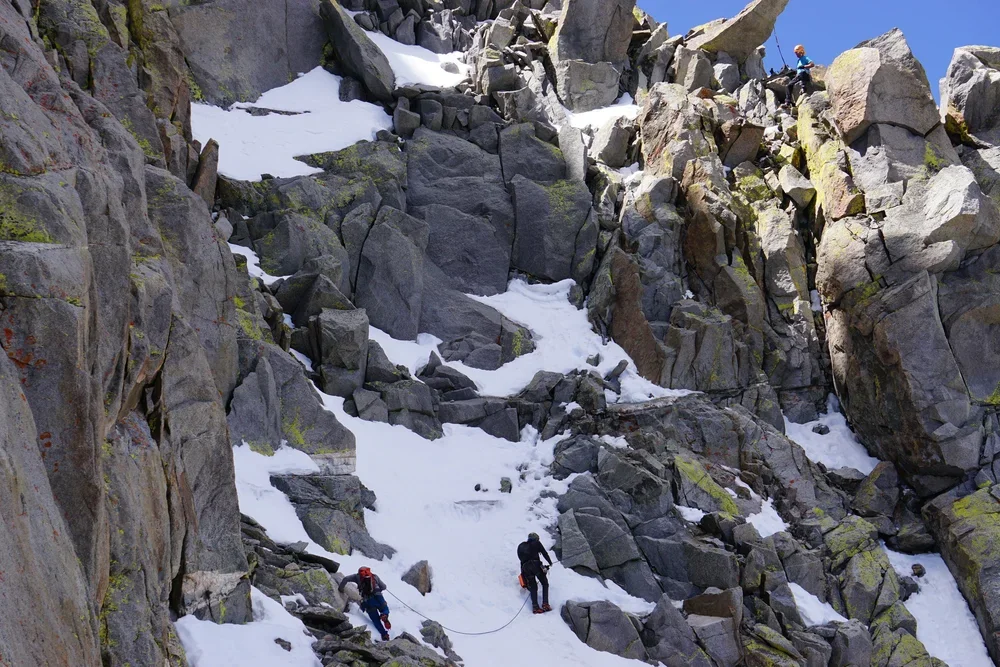 We're pleased to share with you 2 clients, Jesse Felten and Angel Castaneda, successfully reached the summit of Mount Sill (14,154') via the North Couloir route on July 1st, 2018 with GSG Guide Josh Reinig. Mount Sill is 1 of 15 fourteener's in California and is considered a technical peak needing the appropriate skills to ascend and descend her slopes safely. Snow travel up to 50+ degrees is involved along with technical rock climbing up to low 5th class during the crux of the route. Jesse and Angelo both demonstrated the ability to keep it cool under pressure while ascending this beautiful peak in the High Sierra, also known as Nee-na-mee-shee, meaning Guardian of the Valley. Congratulations on your ascent gentleman and big thanks to GSG Guide Josh Reinig for facilitating a safe and fun weekend for our guests.