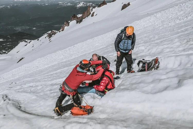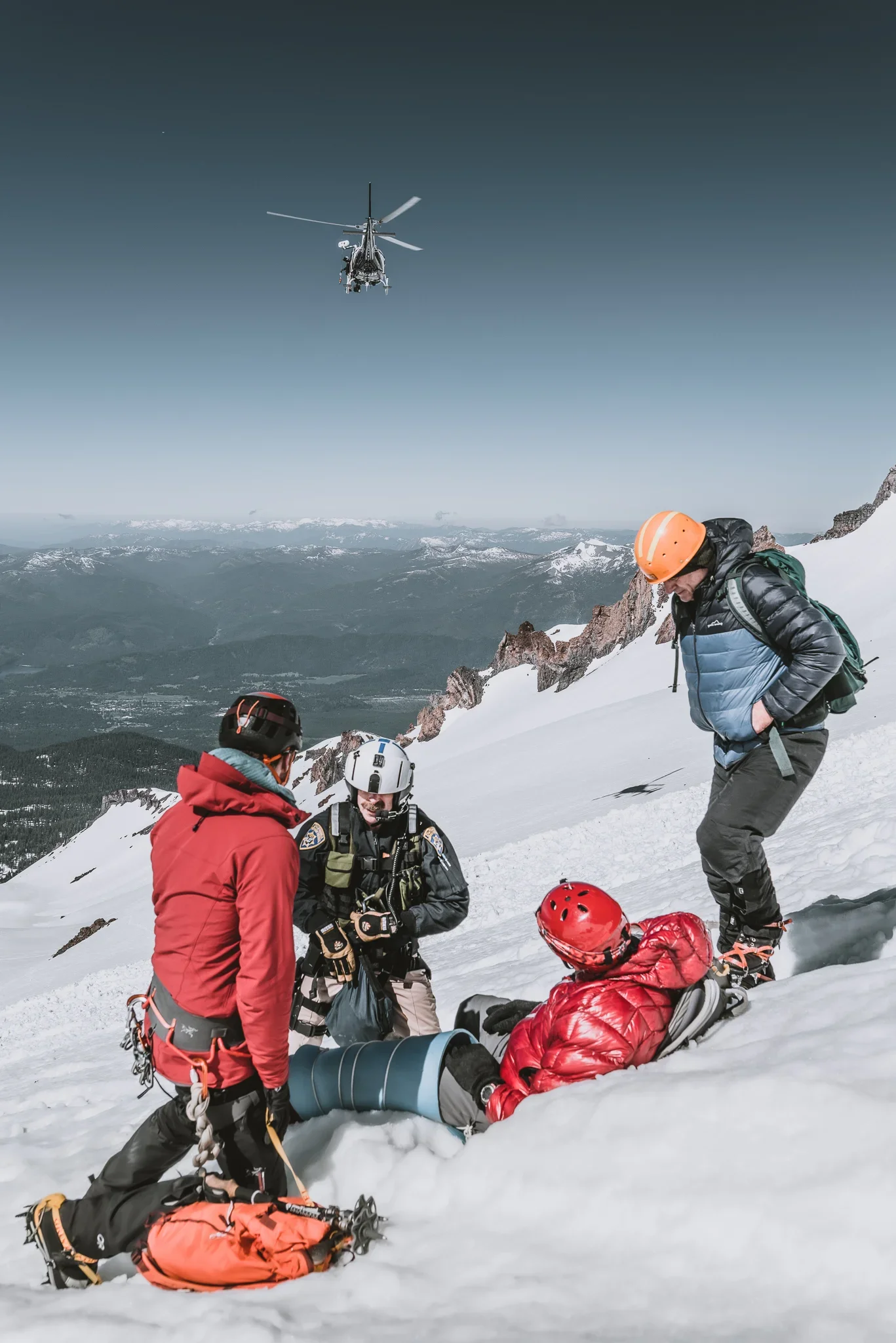 This was the 6th rescue in one week on Mount Shasta and we were right in the thick of it. A very experienced mountaineer took a 300’ foot fall down Avalanche Gulch as we were descending the route after our successful summit. After doing a head to toe examination, taking vitals, cleaning up a few surface level wounds, and checking the victims LOR (level of responsiveness) he was airlifted to a nearby hospital where he is expected to make a full recovery. If you’re following us on Instagram or any other social media outlets we have there’s a good chance you enjoy recreating in the mountains or in the backcountry in general. We can’t stress enough that being trained in Wilderness Medicine is an invaluable tool to have in your toolbox and certainly helped in this scenario. Both GSG Guide @rhartegan and GSG Ambassador @jameson.schultz had formal training and certification as a Wilderness First Responder and Wilderness First Aid, their training certainly helped facilitate a successful rescue on the mountain. Whether you sign up for our extended WFR or WFA programs this coming November with our partner @themedalliance or another organization we strongly suggest doing so. You never know when the training you have will come into play and be needed in the field. Big thanks to the real hero’s, the Shasta Sheriff’s department for executing yet another successful rescue and even more so to Sheriff Mike Berry who you see in the photos. All photos curtesy of GSG Ambassador Jameson Schultz @jameson.schultz .